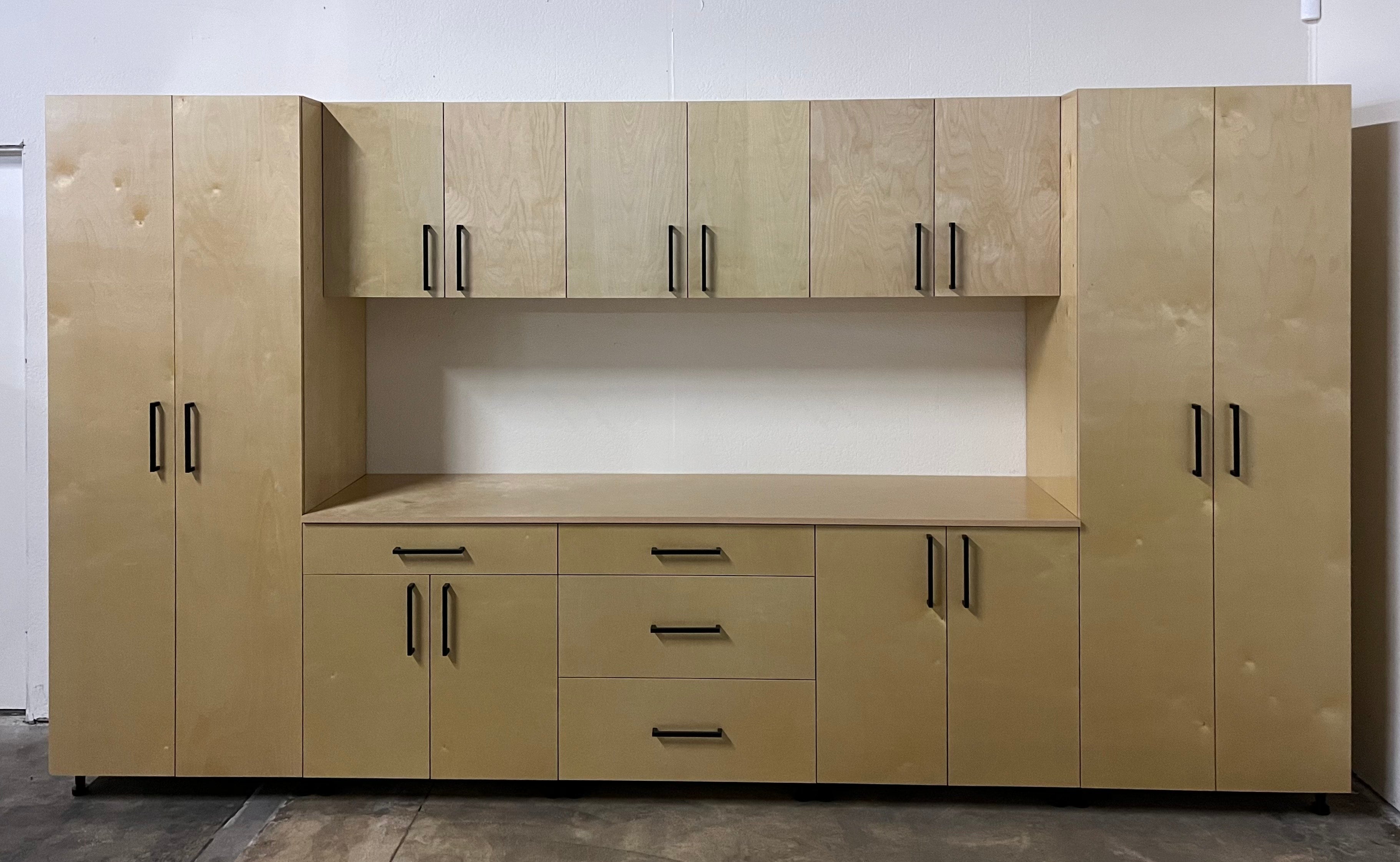 Transform your garage into a well-organized, high-functioning space with Stark Cabinets' premium garage cabinets. Crafted from solid plywood, our cabinets offer unmatched durability, resisting warping and moisture for long-lasting performance. Unlike standard garage storage solutions, our cabinets feature soft-close hinges and drawers, ensuring smooth, quiet operation and a high-end feel. Built for strength, style, and convenience, our garage cabinets are designed to handle heavy loads while enhancing the look of your space.