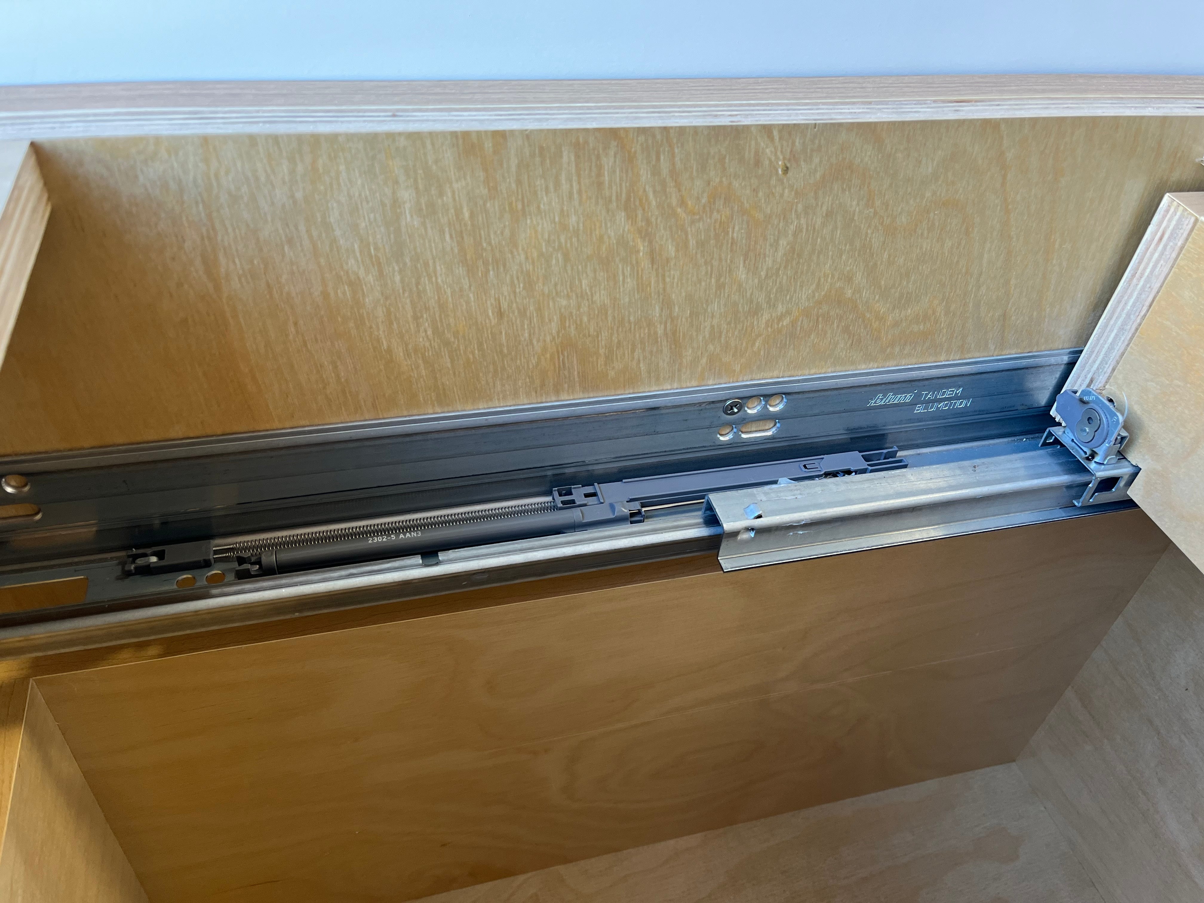 - Full extension concealed under-mount soft-close slides